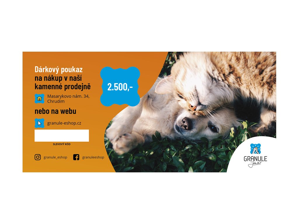 Pokud chcete udělat někomu radost, věnujte mu náš dárkový poukaz, který je možné využít jak na www.granule-eshop.cz, tak na naší kamenné prodejně.