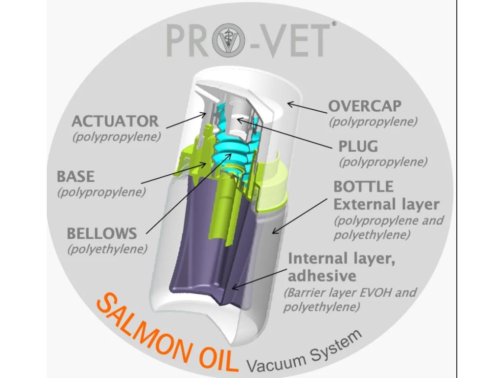 - Bezpečný obal – lososový olej je balený speciální vakuovou technologií, díky které nepřichází do styku s kyslíkem a kvalita oleje je tak zaručená až na 20 měsíců.