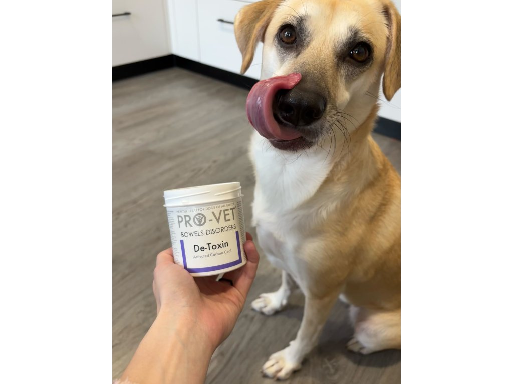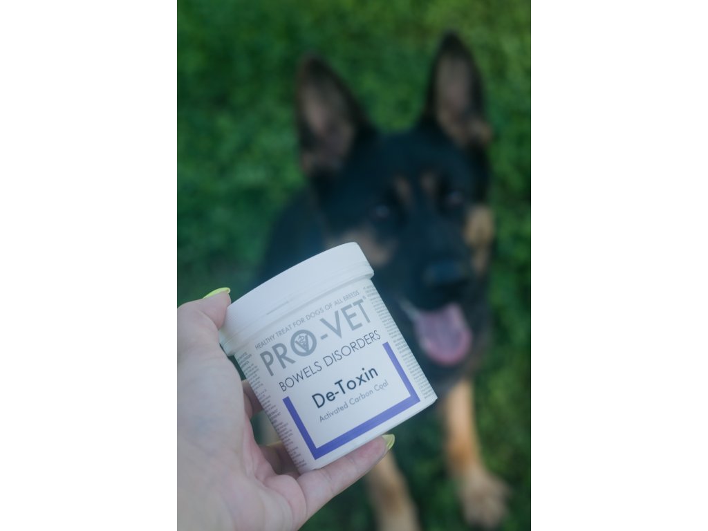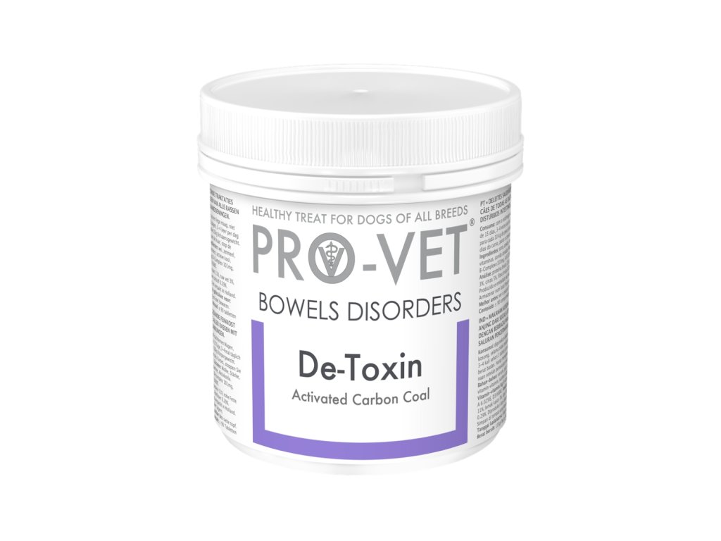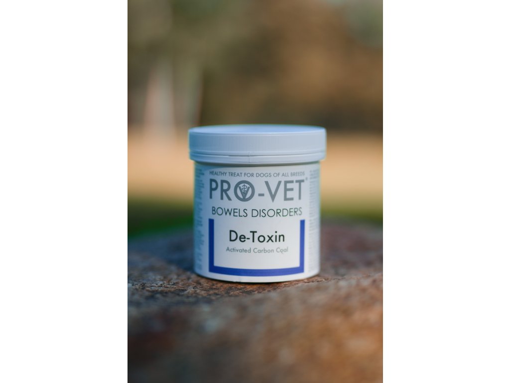 Vyluxuje váš hafan každý drobek a „fuj to je!“ na něj neplatí? Přesně na takové žroutíky naštěstí mysleli veterinární odborníci z PRO-VET. Do 100% přírodních pastilek De-Toxin nadrolili pěknou dávku aktivního uhlí, které chrání trávicí trakt a má detoxikační účinky. Jsou vhodné při otravě jídlem a jinými toxiny, chronických otravách, zažívacích potížích (průjmech či plynatosti), salmonelóze, virové hepatitidě, selhání ledvin, cirhóze jater, ale také při vysoké hladině cholesterolu. Pastilky urychlují vylučování toxických látek z těla a zabraňují jejich vstřebávání. A tak má váš chlupáč zase v bříšku jako v pokojíčku.