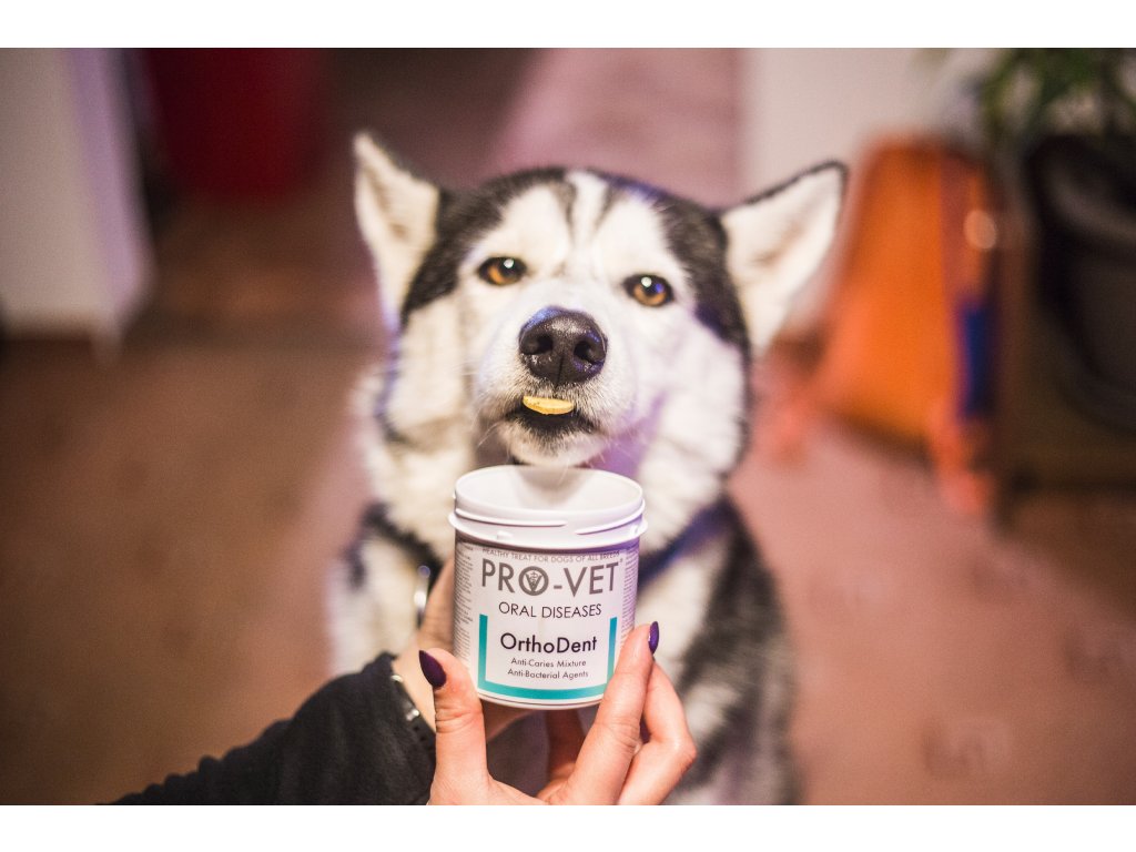 Zápach z tlamičky je signál, že vašeho pejska pravděpodobně trápí zubní plak a zubní kámen. A tak je čas na vitamíny. Ale ne ledajaké – přírodní a plné bylinek!! Díky tabletkám PRO-VET Orthodent už váš chlupáč nebude všelijak převalovat tvrdé granule v tlamě anebo dokonce úplně odmítat žrát. Antibakteriální látky totiž pomáhají při léčbě onemocnění ústní dutiny, chrání před tvorbou zubního plaku a zubního kamene. Velký podíl na tom má směs koření, máta, eukalyptus a mořská zelená řasa, která je známá svými blahodárnými účinky při problémech v psích tlamičkách. A bonus pro páníčky? Eliminují zápach z úst.