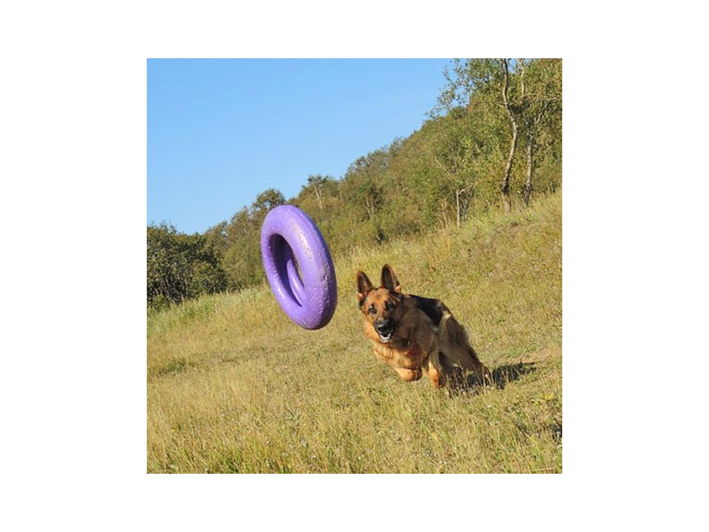 Psovi nepoškozuje zuby a dásně vašeho psa. Umožňuje se psovi lehce zakousnout, aniž by byl narušen tvar a vlastnosti hračky. Viditelné stopy po zubech patří k běžným vlastnostem hračky a nesnižují její odolnost či trvanlivost. Po čase se dokonce zcela ztratí hladký povrch, co je přirozený projev a patří k užívání.