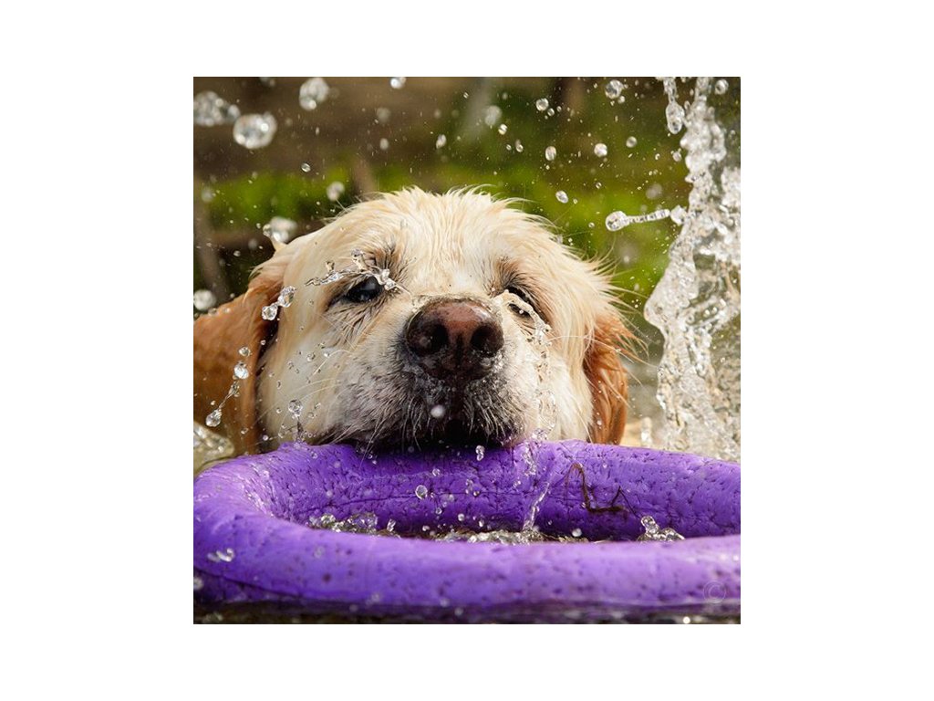 Psovi nepoškozuje zuby a dásně vašeho psa. Umožňuje se psovi lehce zakousnout, aniž by byl narušen tvar a vlastnosti hračky. Viditelné stopy po zubech patří k běžným vlastnostem hračky a nesnižují její odolnost či trvanlivost. Po čase se dokonce zcela ztratí hladký povrch, co je přirozený projev a patří k užívání.
