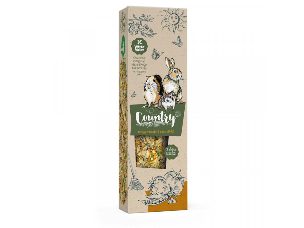 Tyčinky pro hlodavce a králíky Witte Molen Country rajčata a hrášek 180 g