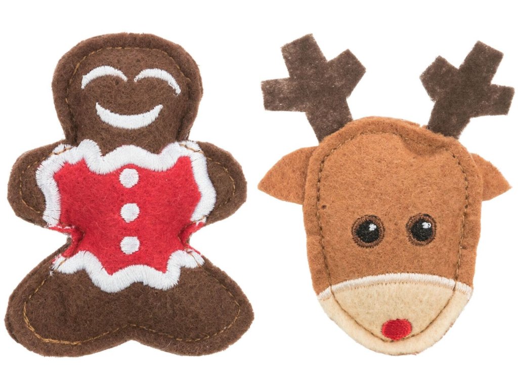 Xmas figure set - sada 2 vánočních hraček sob a perníček, 8 cm, filc s catnipem